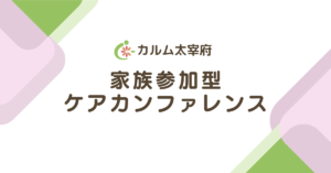 カルム太宰府では、以前よりご家族様のケアカンファレンスへのご参加を積極的におすすめしております。ご家族様がご本人様のケアに関わっていただくことで、ケアの質がより高まり安心して生活していただける環境につながります。今回は、ケアカンファレンスの概要と、ご家族様が参加されることの意義について、簡単にご紹介いたします。