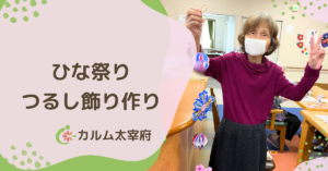 カルム太宰府では、春の訪れを感じさせる「ひな祭りつるし飾り作り」のレクリエーションを実施しました。