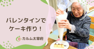 今年のバレンタインデー、カルム太宰府では入居者の皆さんと一緒にケーキ作りを楽しみました。