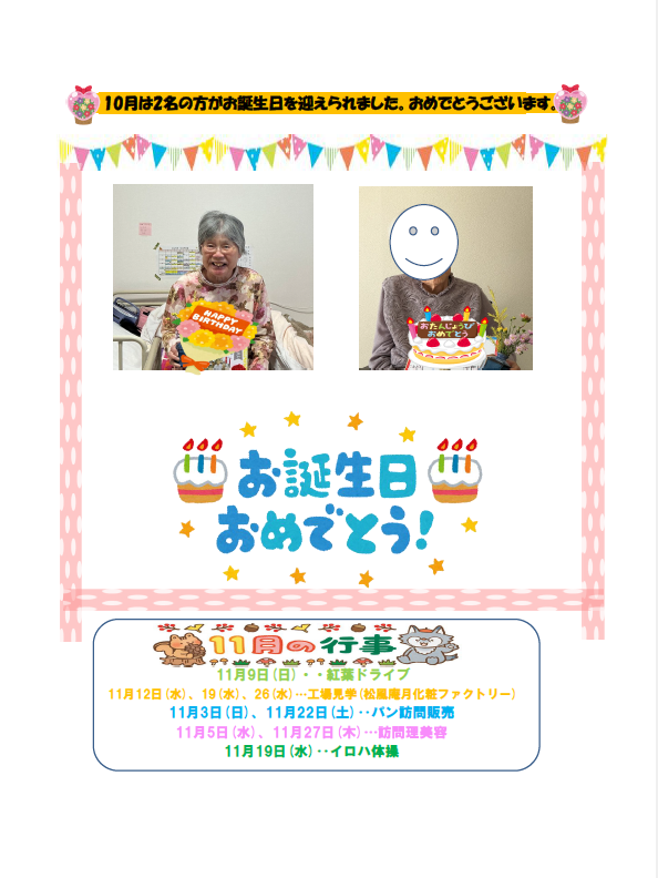 10月は2名の方がお誕生日を迎えられました。お誕生日おめでとうございます!