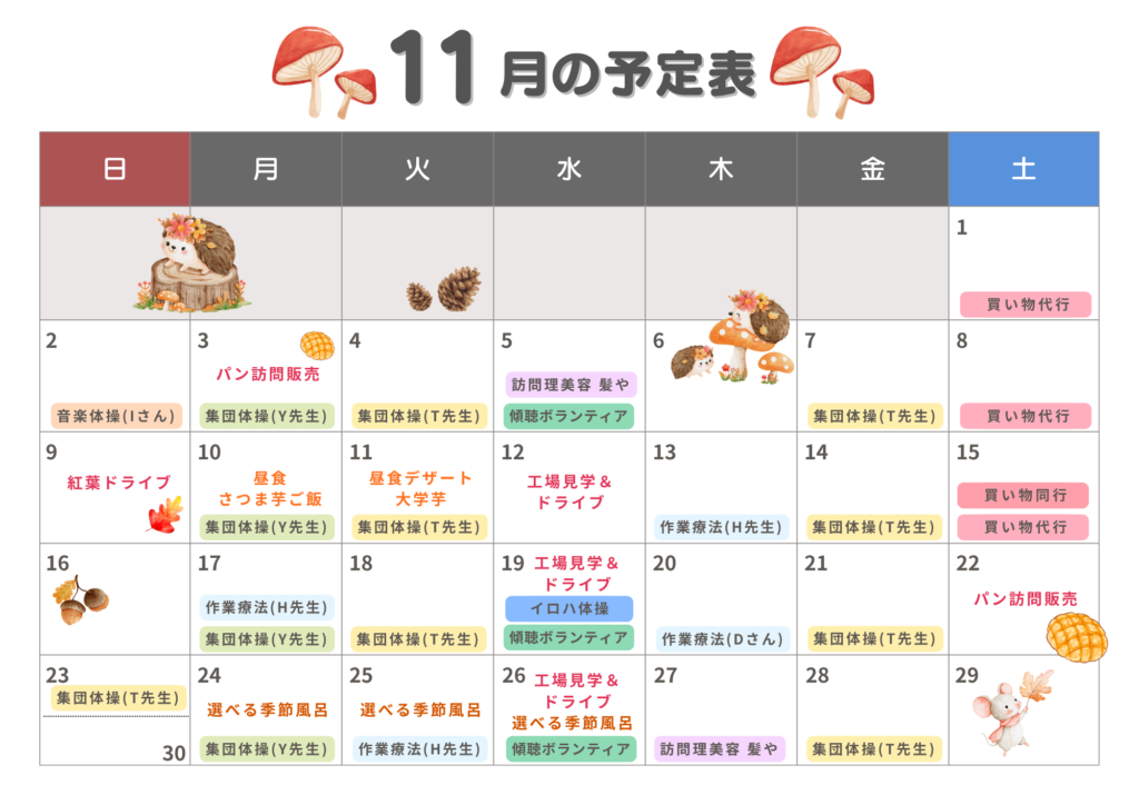 | 11月5日(水)・11月27日(木) | 訪問理容室 |