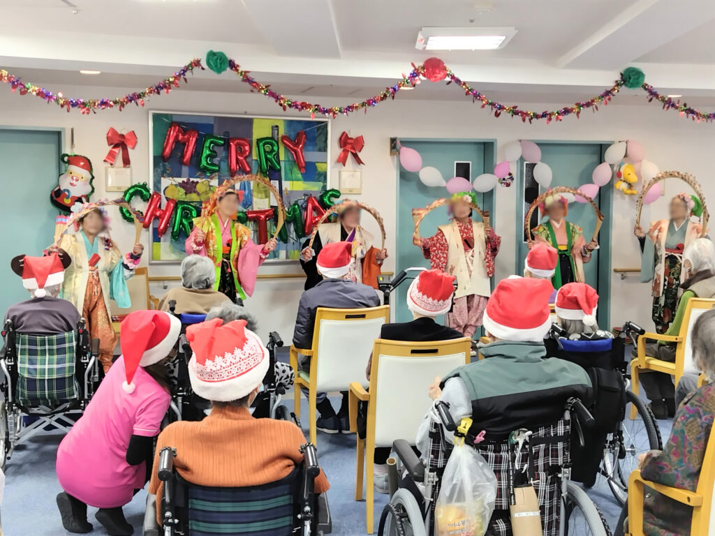 介護施設のクリスマス会で玉すだれ