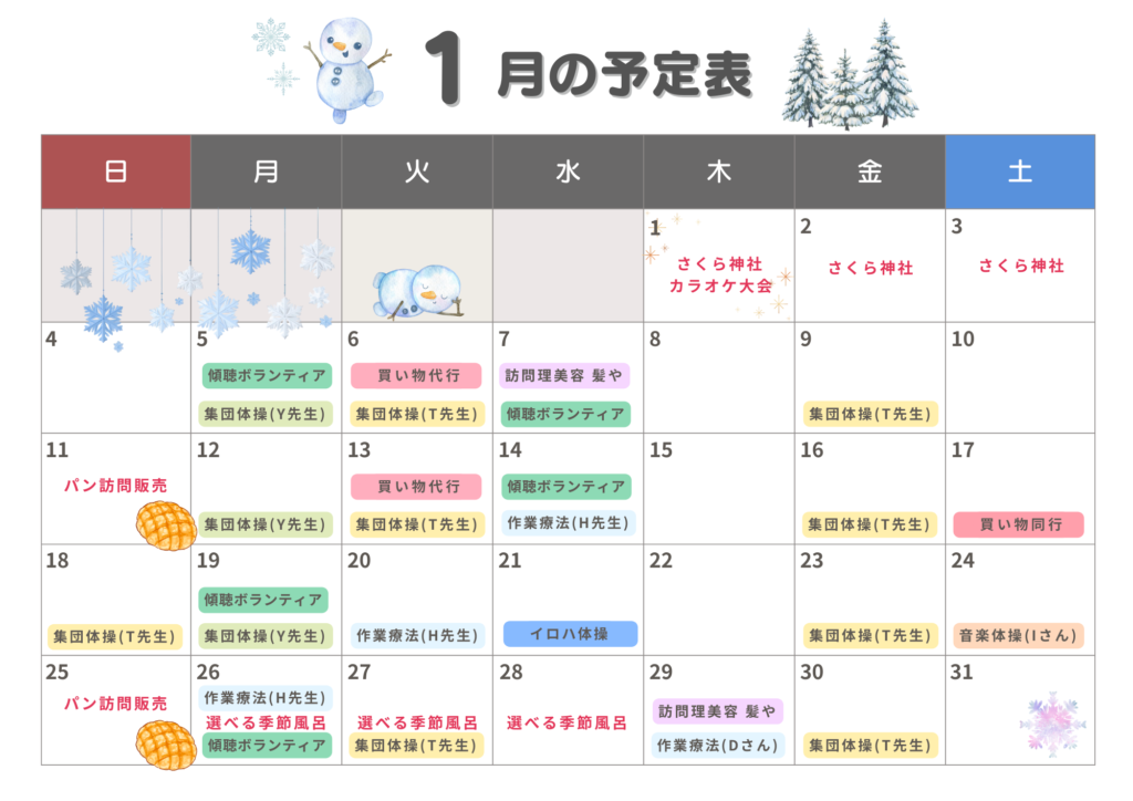1月の予定表