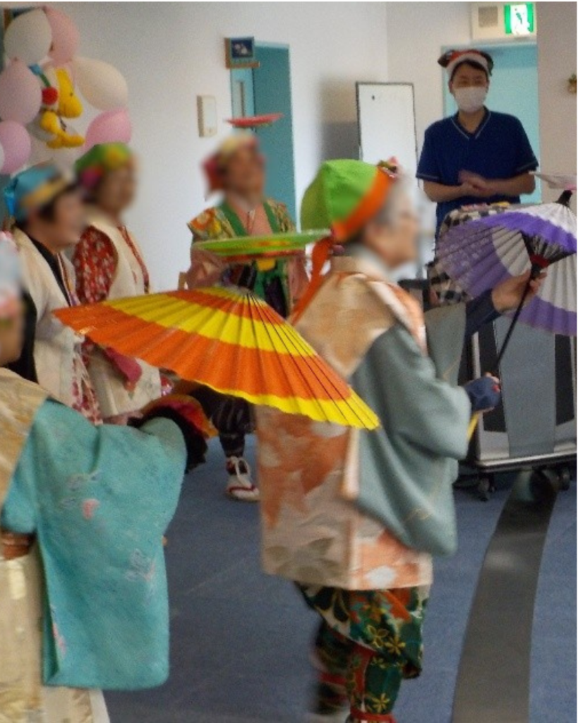 介護施設のクリスマス会で玉すだれ