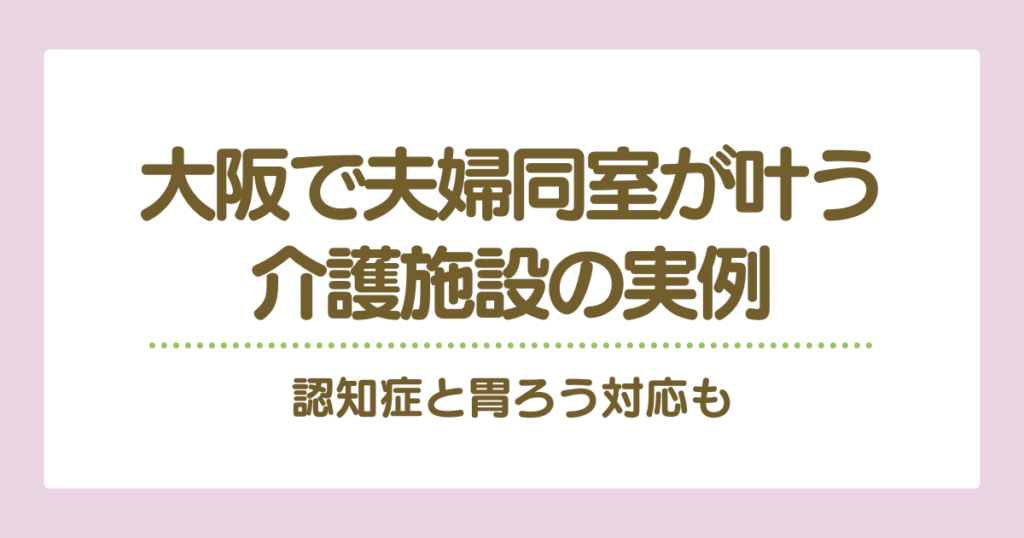 大阪で夫婦同室が叶う介護施設の実例|認知症と胃ろう対応も