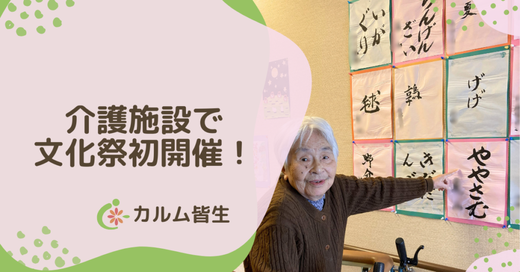 11月、カルム皆生で初めての文化祭を開催しました。 習字や塗り絵、折り紙はもちろん、以前ブログでも紹介した手作りギターや万灯も展示しました。 今回は特別に、職員やそのご家族の作品も一緒に飾らせていただきました。さらに入居者様から「昔作った作... -