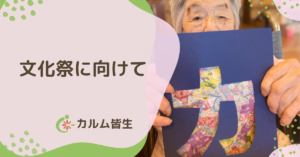 工程に分けて取り組んだため、多くの入居者様に協力いただいた作品です。折り紙で何が出来るかは文化祭当日をお楽しみに!
