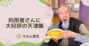 普段は量が多いからと残される方も完食されたり副食のおかずは少し残しても天津飯は全て召し上がっておられる方が多かったです。