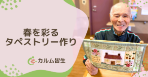 春の陽射しが心地良い季節となり、カルム皆生では入居者の皆様と共に季節感溢れるタペストリーづくりを楽しみました。