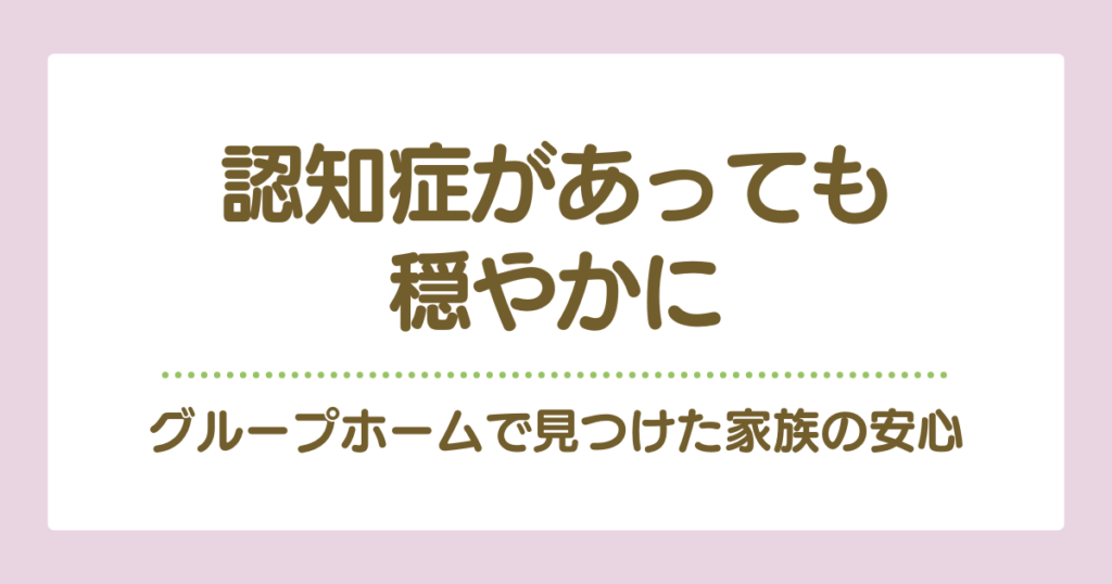 認知症があっても穏やかに|グループホームで見つけた家族の安心